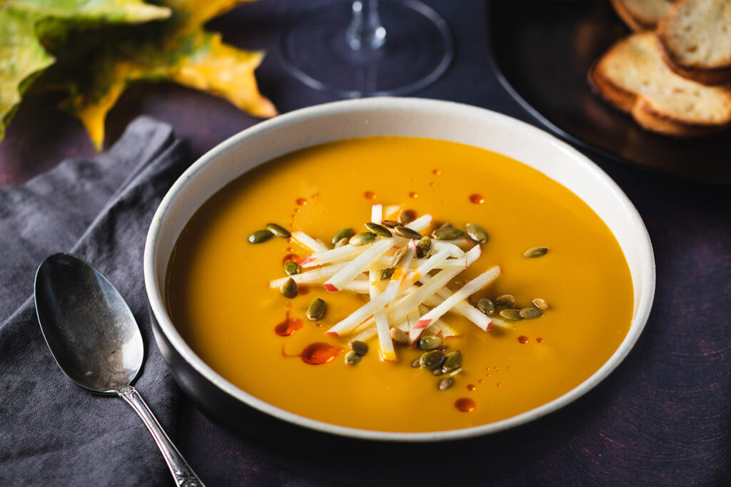 There’s a reason why there’s so many versions of butternut squash soup; it has become a fall staple for home cooks. Our version includes delicious Gala apples to add a subtle sweetness to the earthy butternut flavors. White miso is the mellowest of the miso flavors and adds a savory depth to the soup. Enjoy this for lunch or add a side of roasted vegetables for a warm, fall dinner by the fire.