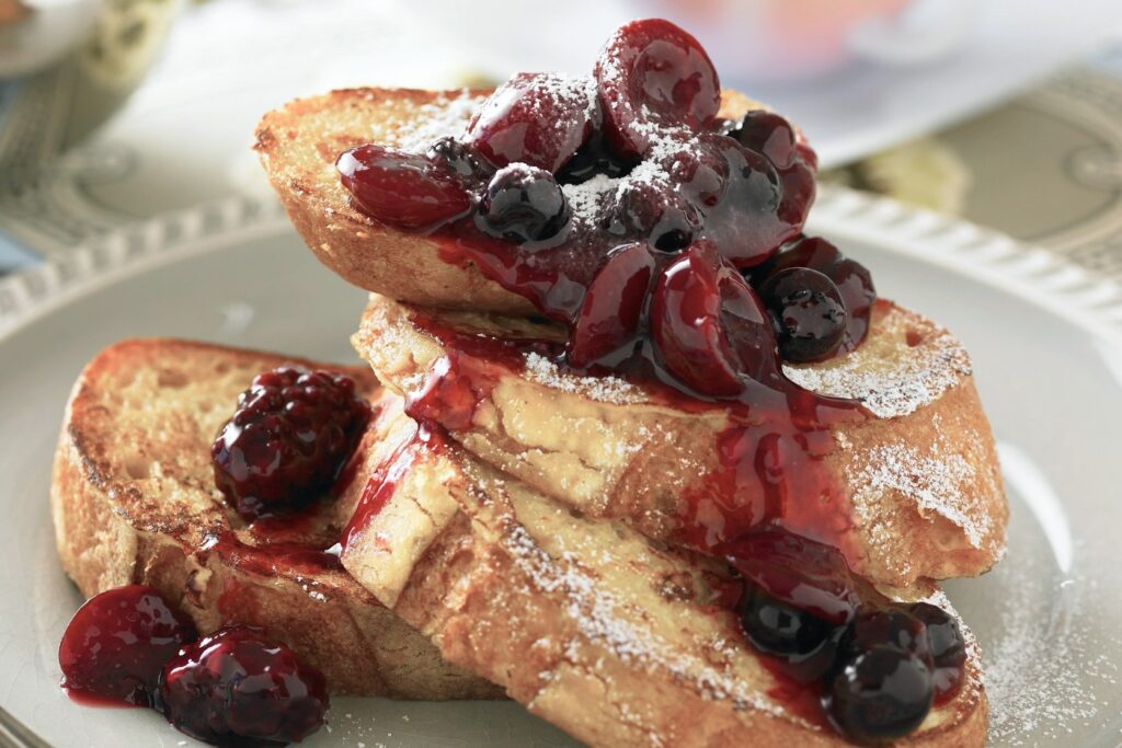 - Top each slice with 1/2 cup cherries and a dollop of vanilla yogurt. Serve immediately.